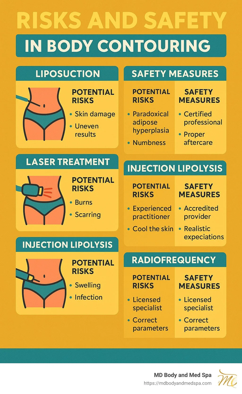 While body contouring services are generally safe in the hands of qualified providers, it's important to understand the potential risks before proceeding with any treatment.