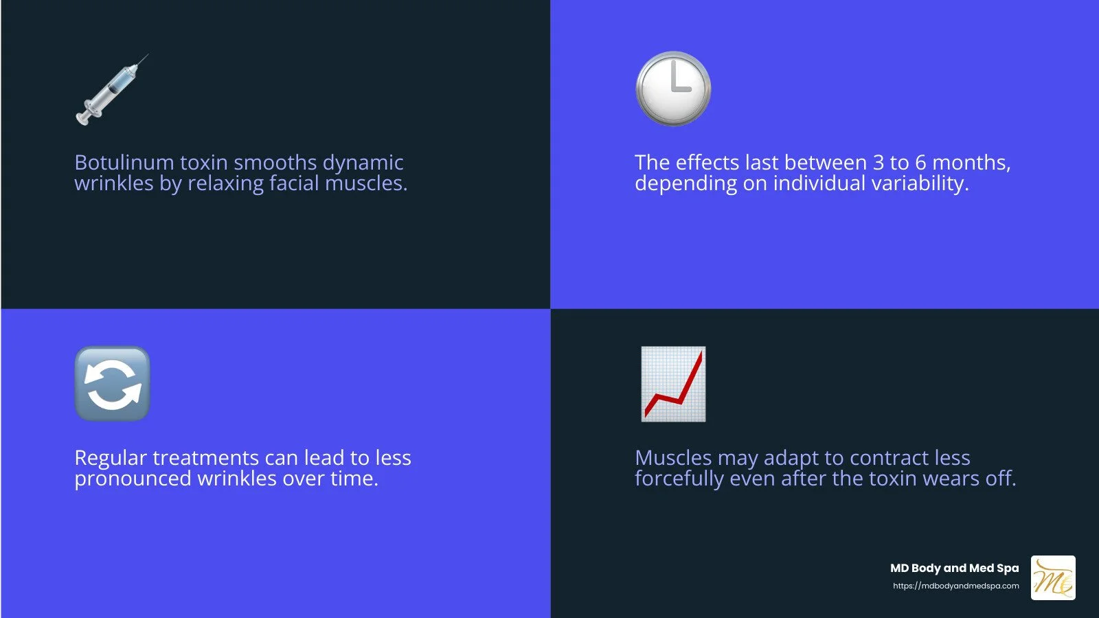 In conclusion, botulinum toxin is a reliable option for reducing wrinkles, but maintaining results requires ongoing treatments. Always consult with a professional at MD Body and Med Spa to ensure the best plan for your unique needs.